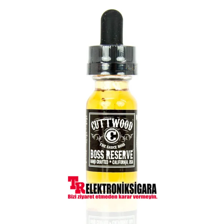 Cuttwood Vape Juice Boss Reserve'in Cuttwood Eliquid'den elektronik likiti , 70VG/30PG tabanına sahip 16.5 ml'lik bir cam damlalık şişesinde teslim edilir, bu büyük vape bulutları için idealdir ve ardından hafif bir boğaz vuruşu oluşur.