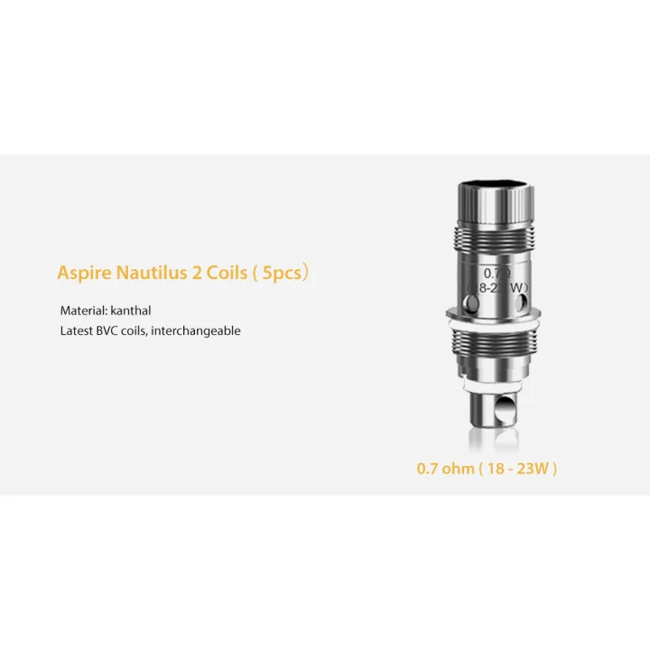 0.7ohm Nautilus BVC Coil - rated for 18-23W - not compatible with Nautilus AIO1.8ohm Nautilus BVC Coil - rated for 10-14W1.8ohm Nautilus BVC NS Coil - rated for 10-12W (Optimized for Salt Nicotine E-liquids)Interchangeable with Nautilus SeriesOpen Wicking PortsOrganic cotton