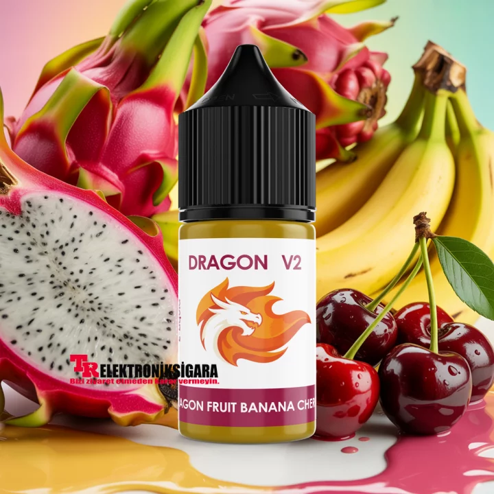 Dragon Liquid V2 Dragon Fruit Banana Cherry 30ml is a unique flavor that consists of a balanced blend of tropical dragon fruit, soft banana, and sweet cherry. This liquid, which offers the most harmonious version of fruity flavors, leaves a sweet, exotic, and slightly sour taste on the palate.