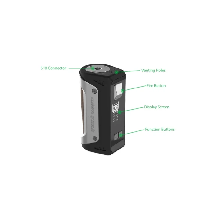 Justvin tarafından tasarlanan Geekvape GM, Heatvape Invader mini'nin baş tasarımcısıyla birlikte, Aegis, tek 18650 veya 21700 batarya ile 100W'a kadar çıkabilen efsanevi bir TC Box modudur