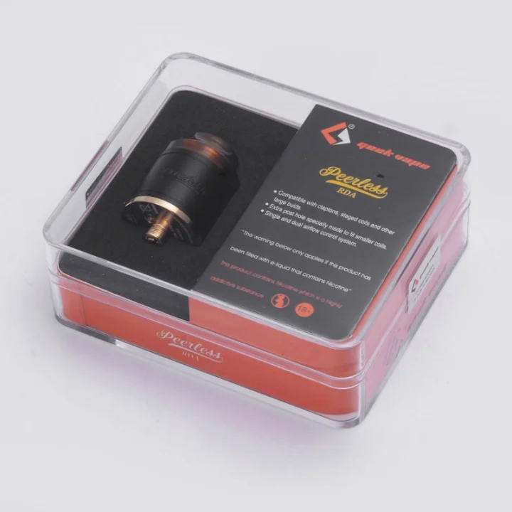 The Peerless RDA features an original structure deck design made to fit large structures with a pole hole added to support small coils. It also comes with a pencil pin for Squonk MOD.