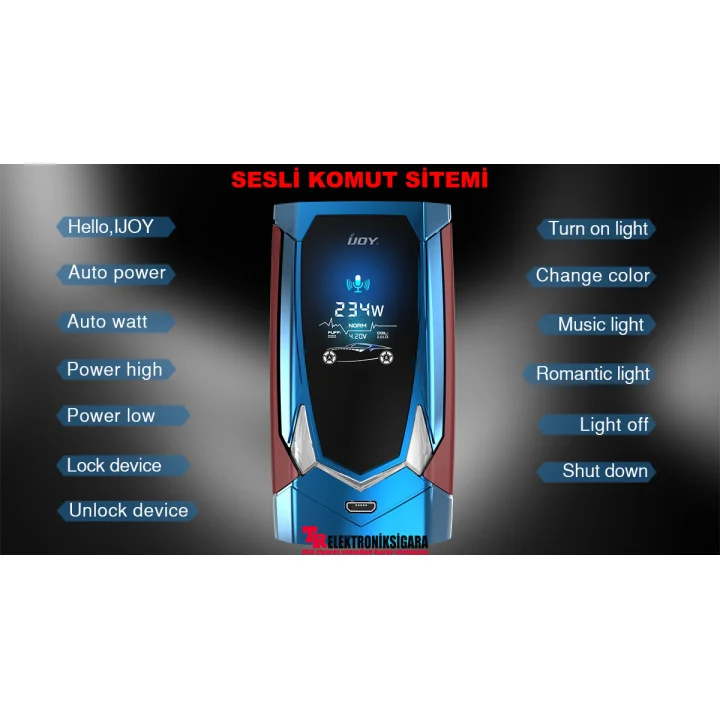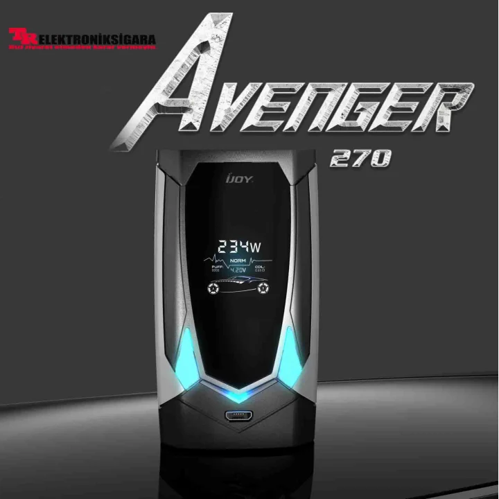 The iJoy Avenger 270 Mode features a 234 watt powerful temperature control box mode with a revolutionary sound control system. Simply say "Hello, iJOY" to activate the voice control system. You have multiple voice commands that allow you to lock the device, adjust the wattage and more. The Avenger 270 has an adjustable RGB LED light switch that can be changed according to your personal preferences. Avenger is compatible with 270, 18650 and 20700 high amperage batteries. The Avenger 270 can fit in almost any tank type thanks to a centered 510 connector that can fit up to 30mm in diameter and smaller tanks. The iJoy Avenger 270 uses the IWEPAL chip with a range of temperature control modes up to 234 watts. The Avenger 270 has a large 1.3 için color OLED display and offers the ability to ignite Nickel, Titanium and Stainless Steel coils in temperature control mode, which also includes a 5V 1A charger and a micro USB port for future firmware updates.