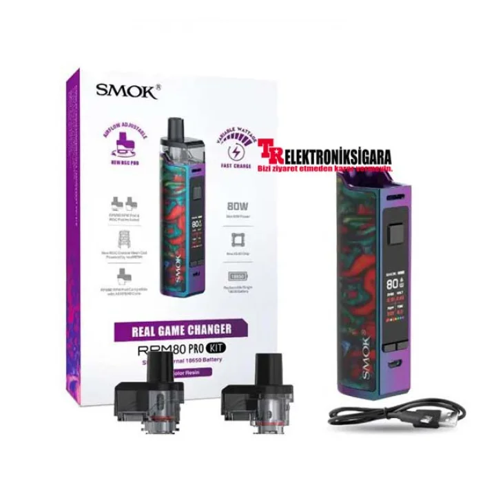 Glad to introduce the RPM80 series vaping device by SMOK. The SMOK RPM80 Pro Pod Mod Kit is uniquely powered by single external 18650 battery and can also fire up to max output of 80W. It utilizes two different pods that are compatible with specific coils. On the one hand, the RPM80 RPM pod fits all RPM40 coils perfectly; on the other hand, the RPM80 RGC Pod is SMOK's first pod with adjustable airflow and equips with the new RGC Conical Mesh 0.17ohm coil powered by nexMesh that supports the power as high as 80w. Moreover, the brand new intelligent IQ-80 chip with functional protections really makes a more comfortable vaping. The gigantic e-liquid capacity with the transparent oil window holds up your longer vaping. Plus the clear LED screen, you will definitely have a great vaping experience through RPM80 Pro.
