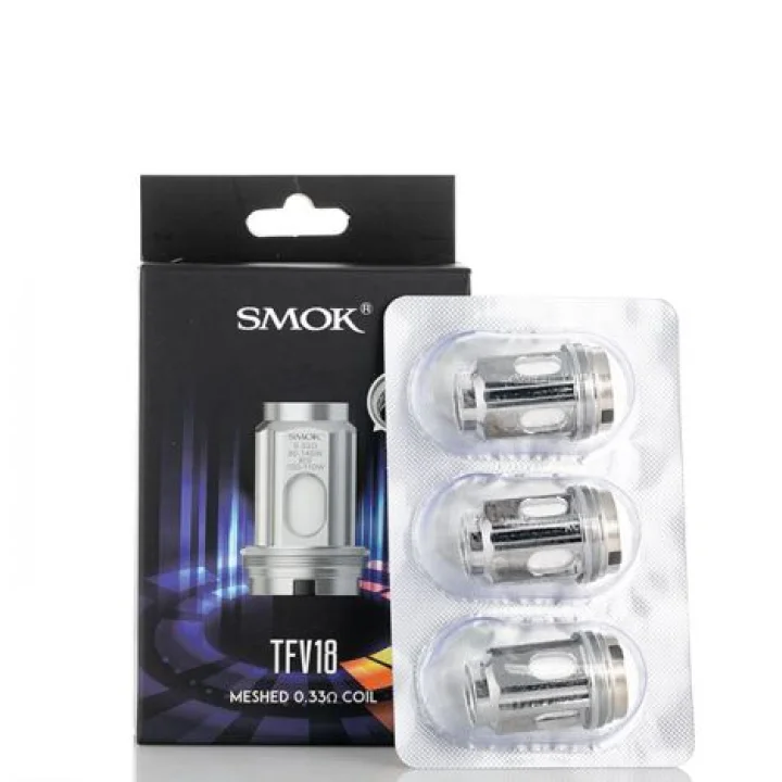 SMOK TFV18 Coils are a series of mesh replacement coils compatible with the Smok TFV18 Tank. These coils are offered in 0.33Ω Single Mesh and 0.15Ω Dual Mesh designs for optimum flavor.