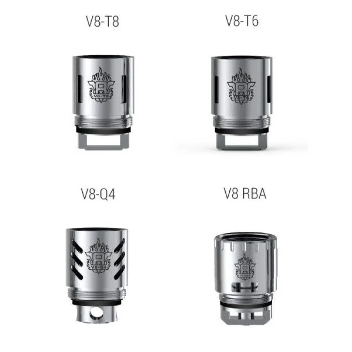 1 x SMOK TFV8 THE CLOUD BEAST Tank1 x V8-T8 Octuple Coil (0.15ohm)1 x V8-Q4 Quadruple Coil (0.15ohm)1 x V8 Exclusive Turbo RBA Coil1 x 510 Rda Drip Type1 x English User Manual1 x Spare Parts Set1 x Replacement Glass