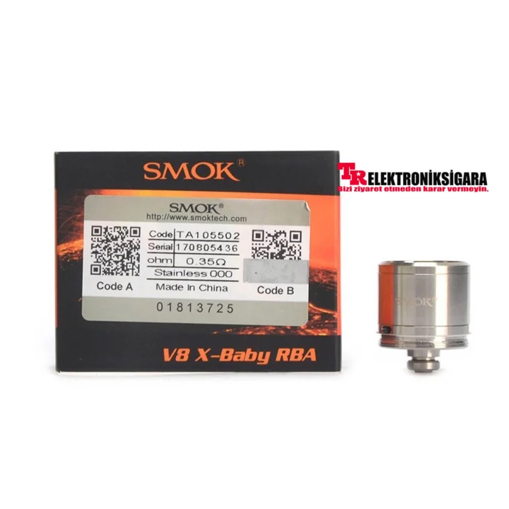 Smok X-Baby RBA Coil PropertiesCompatible with Smok X-Baby AtomizerSmok X-Baby RBA comes with 0.35ohm coil inserted1 * Smok V8 Baby RBA Coil1 * Organic Cotton1 * Allen KeyReplacement Screws