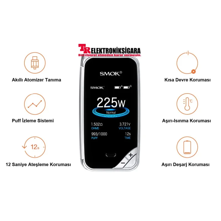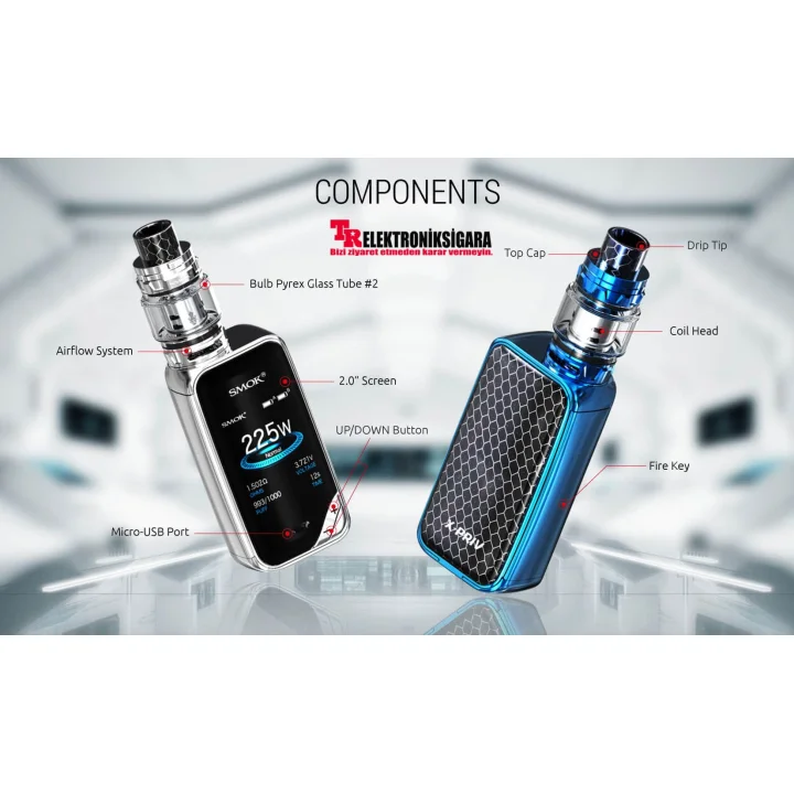 SMOKTech X-Priv Electronic Cigarette, as well as the eye-catching X-Priv, also includes a powerful match TFV12 Prince. X-Priv has a 2.0 inch high-quality color display with clear and redesigned user interface, clear and easy to read. The X-Priv display offers six different colors for the user interface. X-Priv can ignite up to 225 watts and support nickel 200, titanium and stainless steel wires in temperature control mode. X-Priv includes a large side firing button, both tactile and easy to use. X-Priv (2) requires high amps 18650 batteries (sold separately) and can be charged via micro USB port. For best charging we recommend an external charger (sold separately).