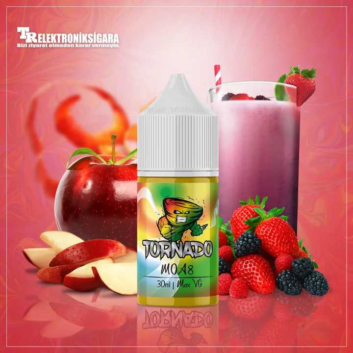 Tornado Likit Moa8 diğer tüm berry e-likitlerinin üstüne bir berry e-likidine ihtiyacınızı karşılayacaktır. Tüm Meyvelerin en sevilenleri Moa8, özlem duyduğunuz karışık berry e-likitidir ve üst nota bir elma ile güzelce tamamlanır.