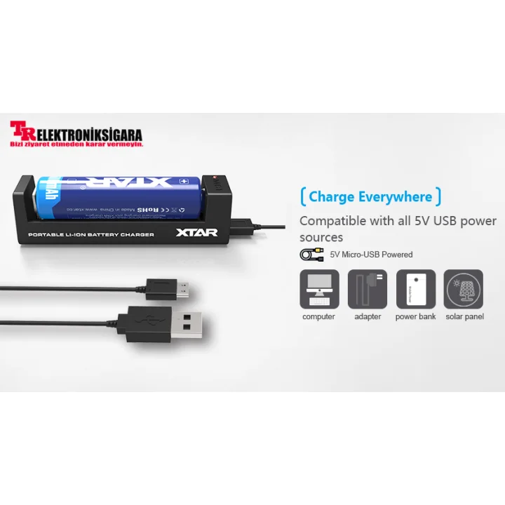 Xtar Brand Li-ion Battery Charger Small size, Li-ion battery charger, Works via USB, Easy to Carry, Easy to Use, Single Battery Charger (1 Battery Charger)